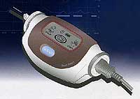 当院で用いている機器は右の写真のもので、サイズは約10cm x 5cm、携帯電話より少し大きめぐらいです。 重量は81gと非常に軽いため、腕に装着してもあまり負担にはなりません。